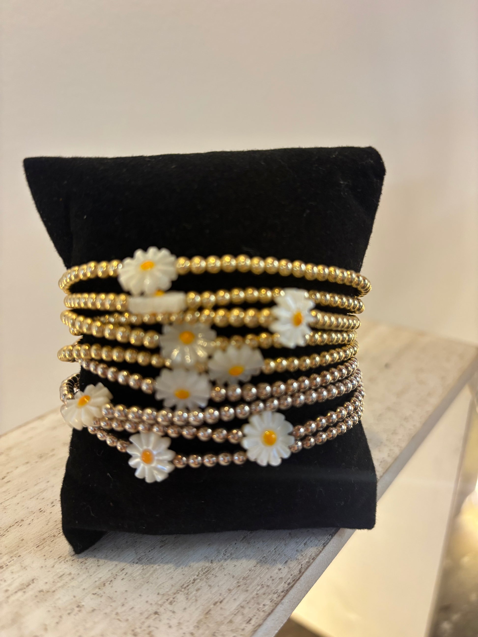 Delicate silver beads catch the light as they wrap around your wrist, anchored by an adorable daisy charm that brings a touch of whimsy to your everyday look. This 7-inch bracelet is feather-light and perfectly petite—designed for those who love understated elegance with a playful twist. Whether you're dressing up for a special occasion, completing a bridal look, or gifting something meaningful to someone you adore, this charming piece delivers effortless style. The snug yet comfortable fit makes it ideal for stacking or wearing solo.