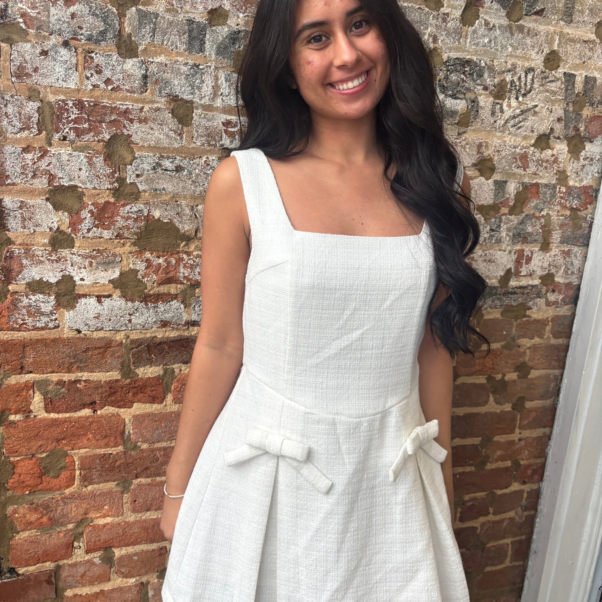 Meet the Ivanka—a playful dress that brings classic schoolgirl charm with its signature bow detail. This beauty strikes the perfect balance between fun and timeless style, making it ideal for anyone who loves a touch of whimsy. Pair it with a cute cardigan for an effortlessly put-together look that works for any occasion. Whether you're heading out for a casual day or want to add personality to your wardrobe, this dress is your go-to piece for turning heads with style and attitude.